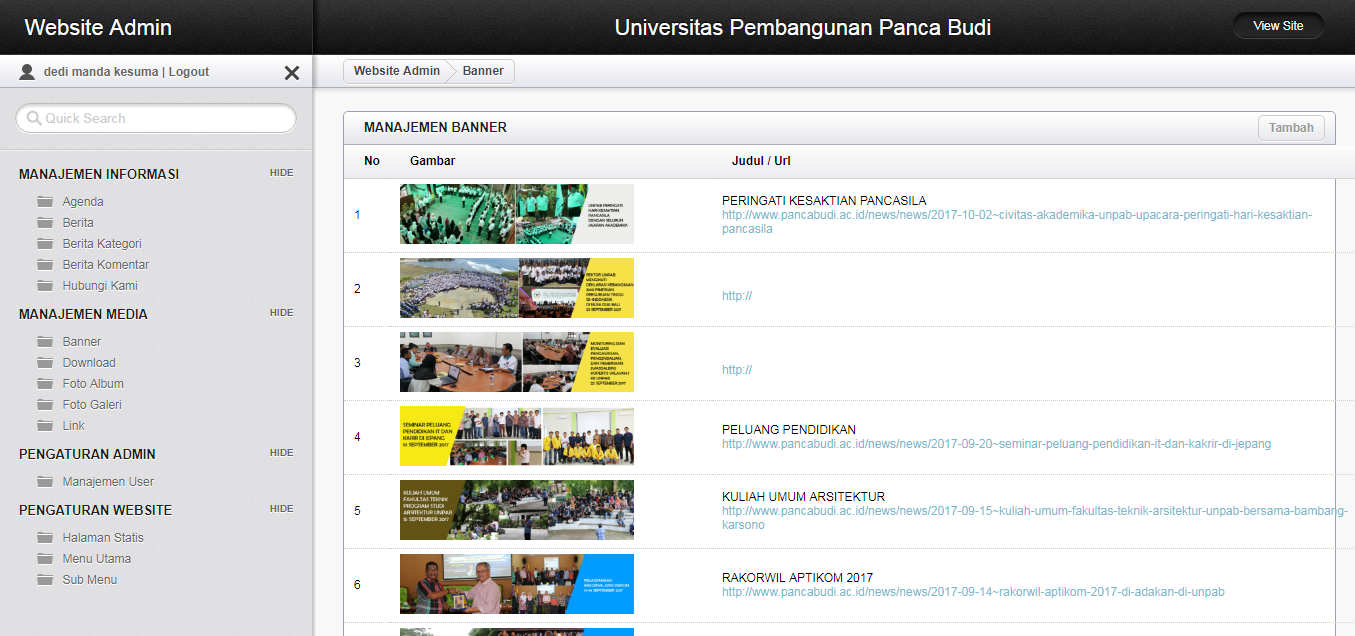 - Click tombol tambah yang ada pada bagian konten manajemen banner