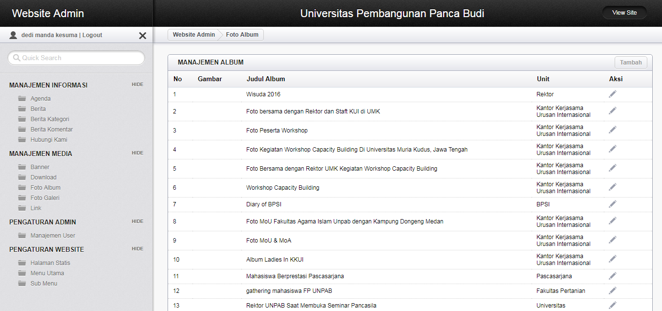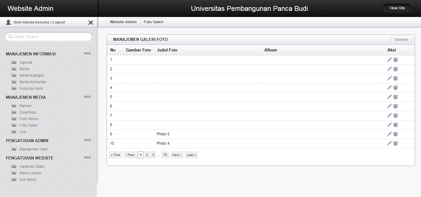 Gambar 25: Tampilan Manajemen Galleri Foto