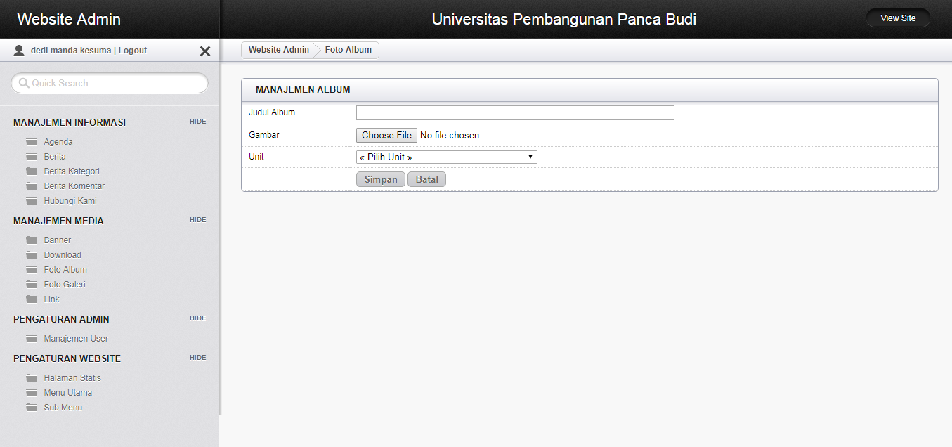 - Click menu Foto Album pada sidebar bagian manajemen media
