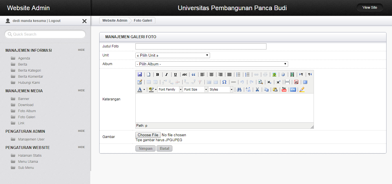 - Click menu Foto Galleri yang ada di sidebar bagian manajemen media